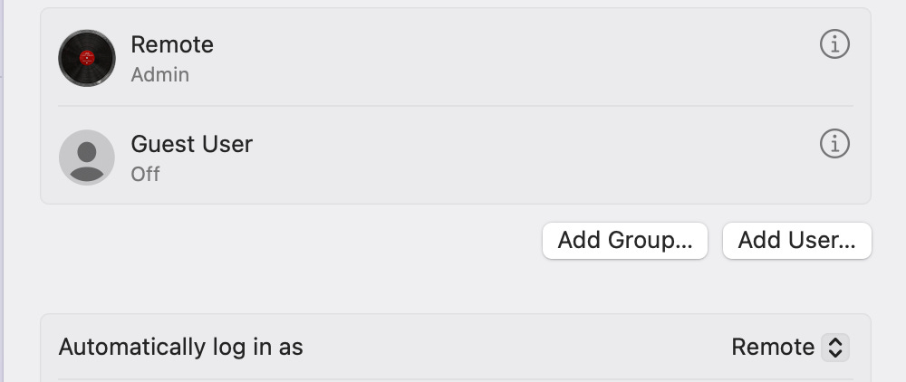 I’ve purged this computer of all other apps, and I’ve set it to stay on, password-free, and ready to mirror. To do this, head to System Settings → User & Groups, and set Automatically log in as → (your username). I’d rather this computer have no other apps on it; its purpose is to be light, focused, and always connected. When I want to work wirelessly, I can grab it from the stand by my couch where it is perched, charged and running.