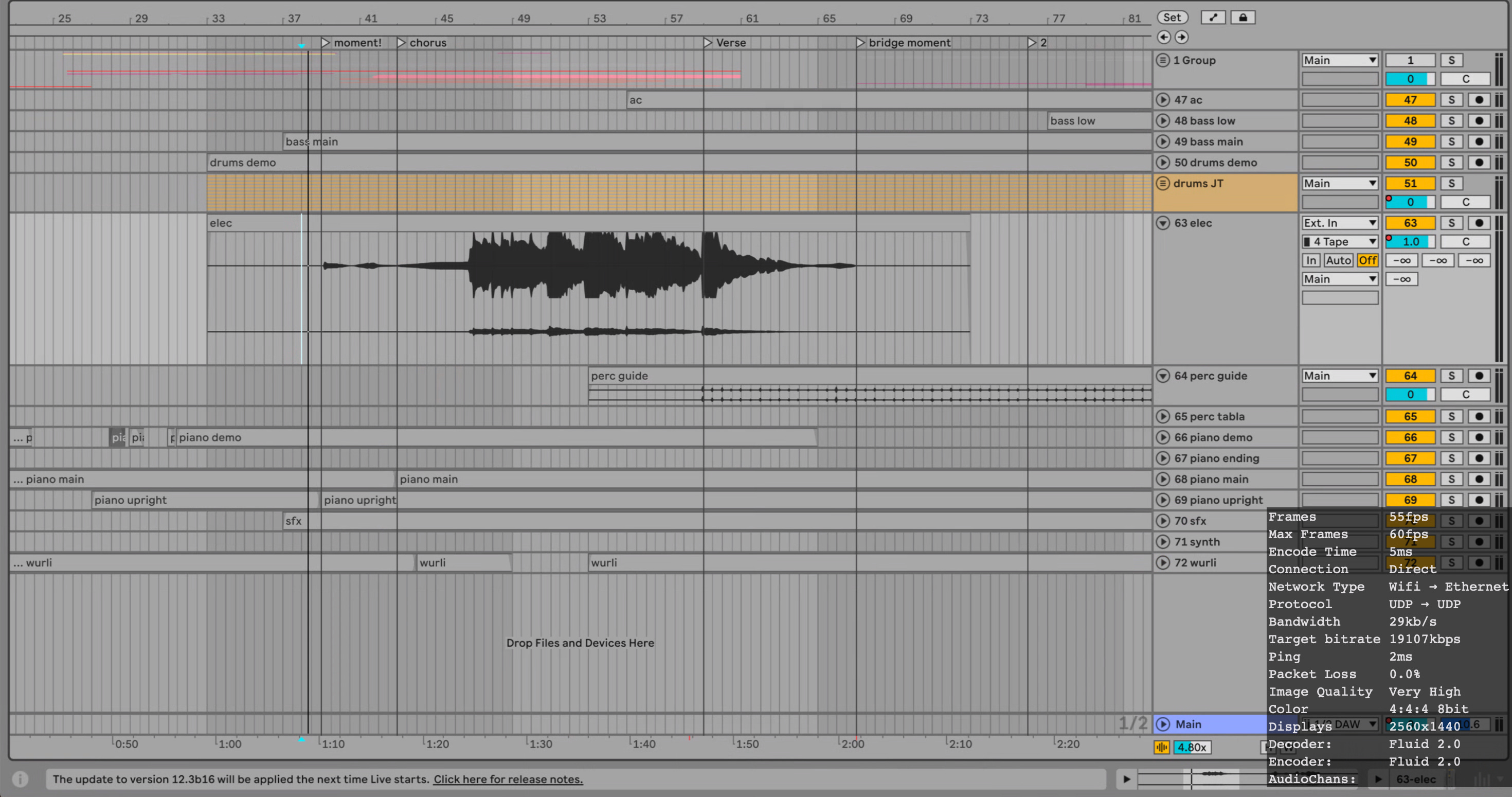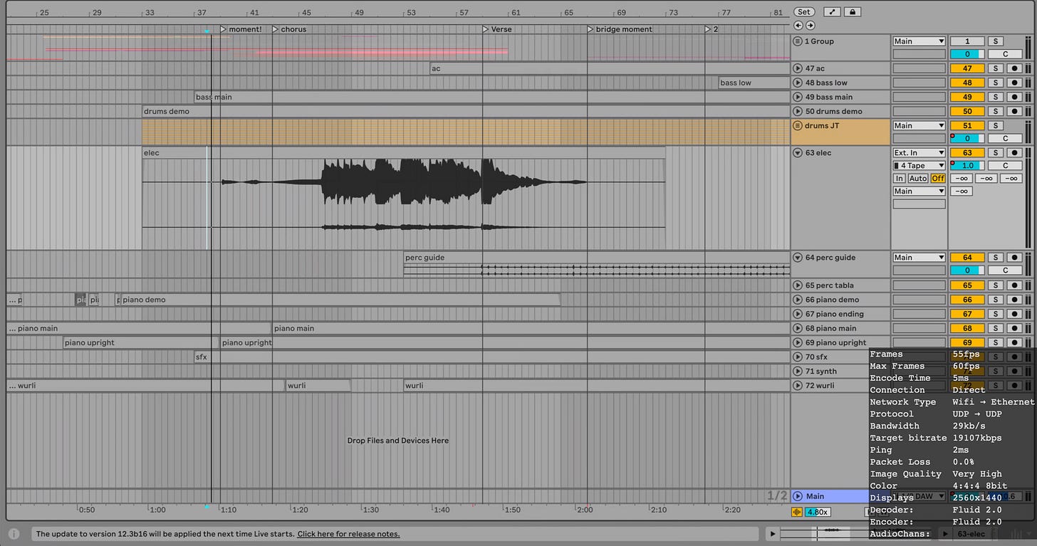 All this streaming takes some more processing from your computer, but not as much as you might think. The main process involved is encoding your computer’s screen to video and sending it over your network. Modern DAWs like Ableton predominantly use the CPU, not the GPU, which leaves plenty of headroom for something like this.